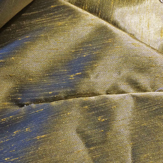 De kleur is nog wat meer goud, dan hier op de foto, maar de structuur is wel goed te zien. Momenteel ben ik nog in de beginfase, omdat ik de voering nog mis. Maar de figuurnaden zitten er in.