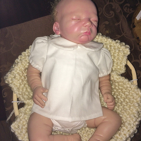 Het patroon heb ik wel aangepast (circa 25% verkleind), want de 0-3 maanden is nog te groot voor Bailey (en een aantal andere reborns).